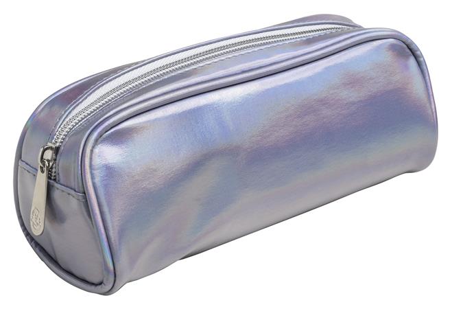 Fémes holografikus hatású poliuretánból készült tolltartó.