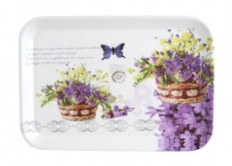 Tálca, műanyag, szögletes, levendula mintás, 21x14cm