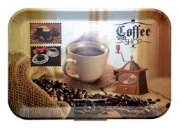 Tálca, szögletes, műanyag, kávé mintás, 33x24,5 cm