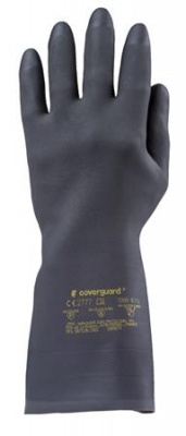 Vegyszerálló, mikroorganizmusok ellen védelemmel ellátott védőkesztyű.-anyaga: polikloroprén és természetes gumi anyag-pamutbolyhozott belső-0,72 mm vastag-hosszúság: 32 cm-csúszás ellen érdesített tenyér-szín: fekete-CE minősítés-méret: 7/S